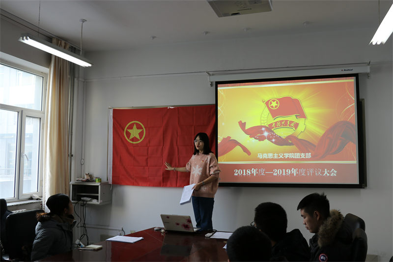 同时,团支部书记宣读了教育评议标准和评议过程。首先,团员自我评价、然后组织评议,最后无记名投票。经过评议,认定王振栋等10名同学在2018年度团员评议中获得优秀,认定罗琛等23名同学为合格。