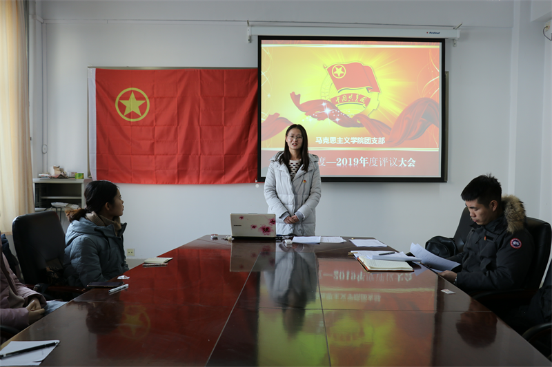 会议上,团总支书记范晓刚老师发言并宣读教育评议内容。他强调,要加强青年团员的思想政治建设,青年团员应当牢固树立“四个意识”,坚持“马院学马”、“马院讲马”,将马克思主义内化于心,外化于行。