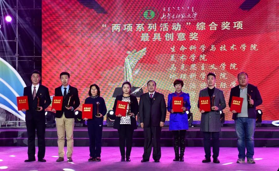 pp电子官网荣获两项系列活动“最具创意奖”荣誉称号,校办主任特格西为获“最具创意奖”单位颁奖,团总支书记范晓刚上台领奖。
