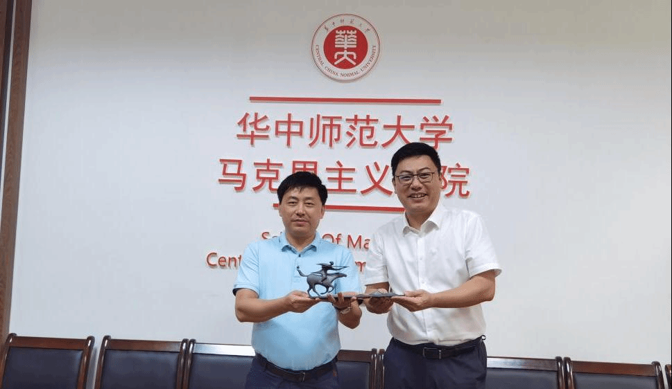 调研结束后,党委书记拓俊杰代表学院向华中师范大学pp电子游戏官网赠送了pp电子游戏官网70周年校庆纪念品。