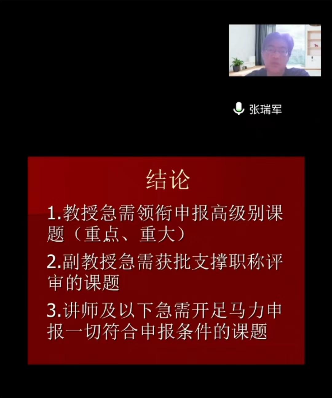 张瑞军副院长传达了学校2023年度国家基金项目申报动员大会的会议精神、学校社科处关于2023年度国家社科基金申报工作的具体安排和重要时间节点,以及学院近三年国家基金项目申报的具体情况。
