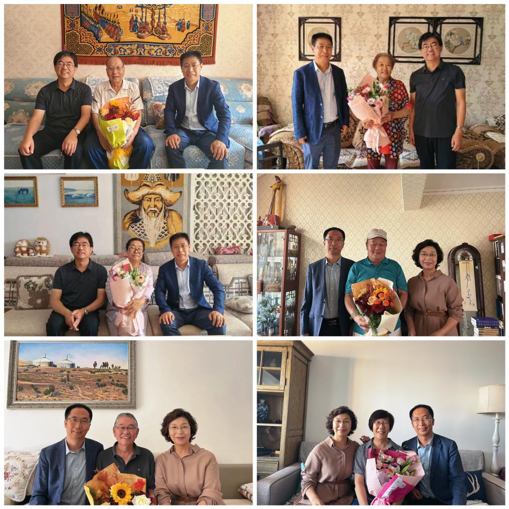 9月9日,在教师节即将到来之际,pp电子官网党政领导班子分别带队慰问龚家淮、金世铭、陈锡增、李充实、格·孟和、阿明布和等离退休教师代表,向他们致以节日的问候和诚挚的祝福。