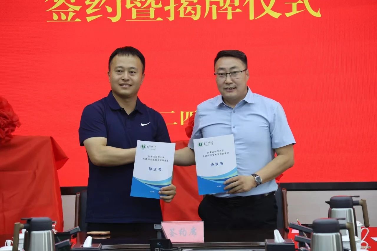 仪式伊始,经过校地双方领导致辞,并就发展规划、合作共建等方面进行了深入探讨交流。随后,固阳一中、二中、三中学校长依次与pp电子游戏官网副院长钢特木尔共同签约建立pp电子游戏官网教学实践基地。