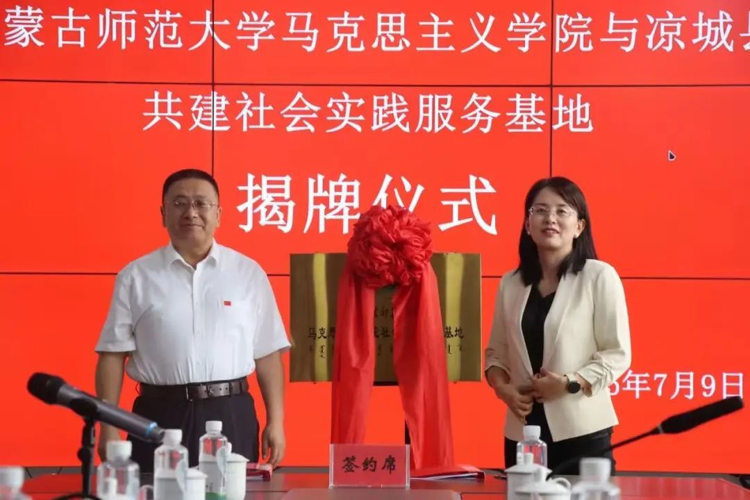 pp电子游戏官网党委书记王丹、中共党史与党建学院院长张瑞军与凉城县委副书记、县长郑东平共同为pp电子游戏官网社会实践服务基地揭牌。