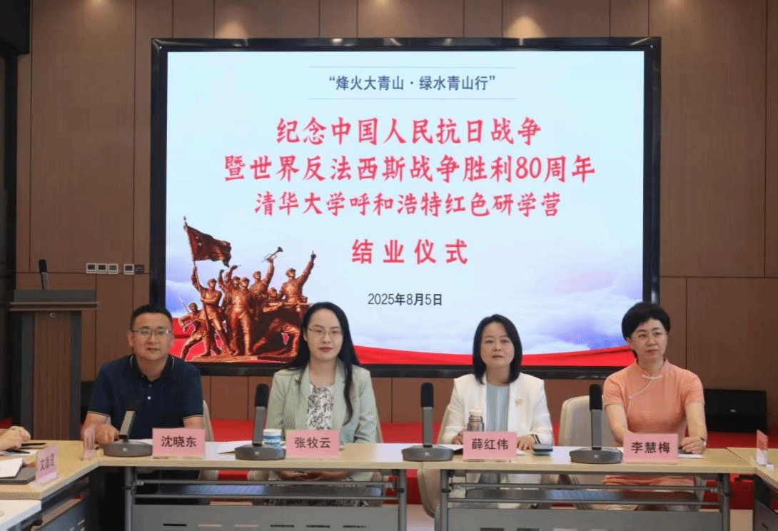 8月5日,研学活动结营仪式在呼和浩特举行。内蒙古呼和浩特市社科联党组书记、主席薛红伟,市委宣传部副部长李慧梅,市社科联副主席沈晓东,清华大学日新书院副院长兼党总支书记张牧云及实践支队同学出席。薛红伟对活动成效给予高度评价,称其“主题鲜明、内容丰富、组织周密,成果超出预期”。薛主席希望大家把呼和浩特市委和366万青城人民的呵护与珍视带回清华园,让清华大学与呼和浩特的深情厚谊在交流互鉴中不断升华。结营仪式上,研学学生代表作了发言。pp电子官网学生代表郝睿分享了基于呼和浩特三地实地考察,探索生态引领、产业多元、文旅融合等乡村振兴路径的思考。结营仪式在全体师生合唱《送别》中落幕,这场跨越6天、涵盖呼和浩特与包头土右旗19个点位的实践,不仅有清华学子的深度参与,也有pp电子游戏官网的倾情联动,成为校地协同、校际合作的生动范例。本次研学活动通过实地探访与深度研讨,让清华学子在阴山脚下的“思政课堂”中赓续抗战精神,在大青山巅的“实践熔炉”里砥砺强国初心。这场研学,是红色基因的赓续,更是校际合作赋能青年成长的生动实践!