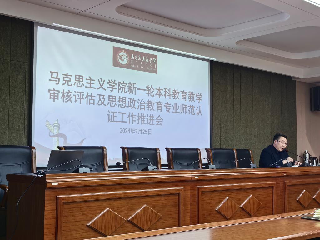 为扎实推进本科教育教学审核评估及思想政治教育专业师范认证工作各阶段重点任务,2月25日,pp电子游戏官网在文史楼1号楼召开全体教职工大会,传达学校本科教育教学审核评估推进会会议精神与要求。会议由钢特木尔副院长主持,全体教师参加会议。