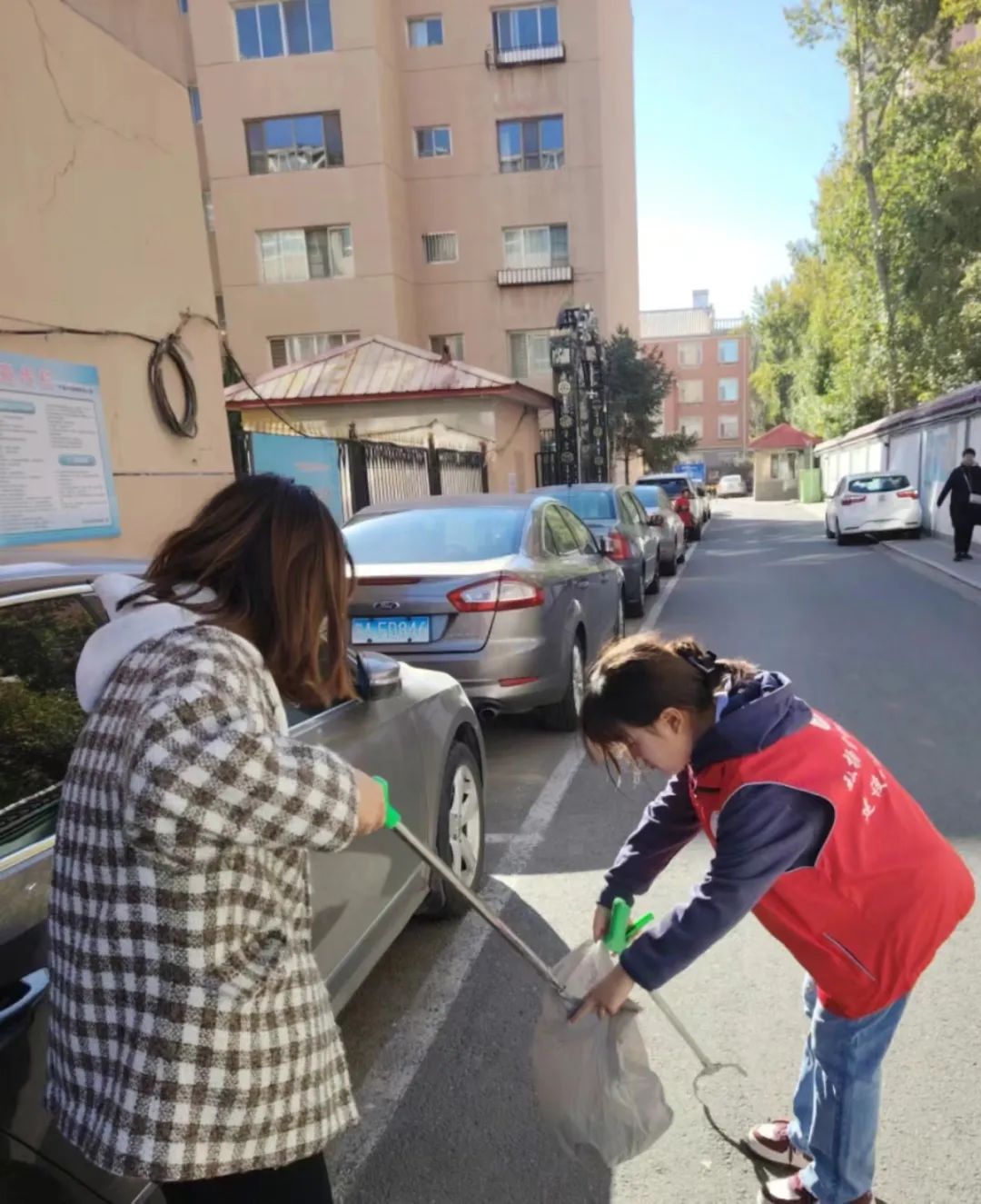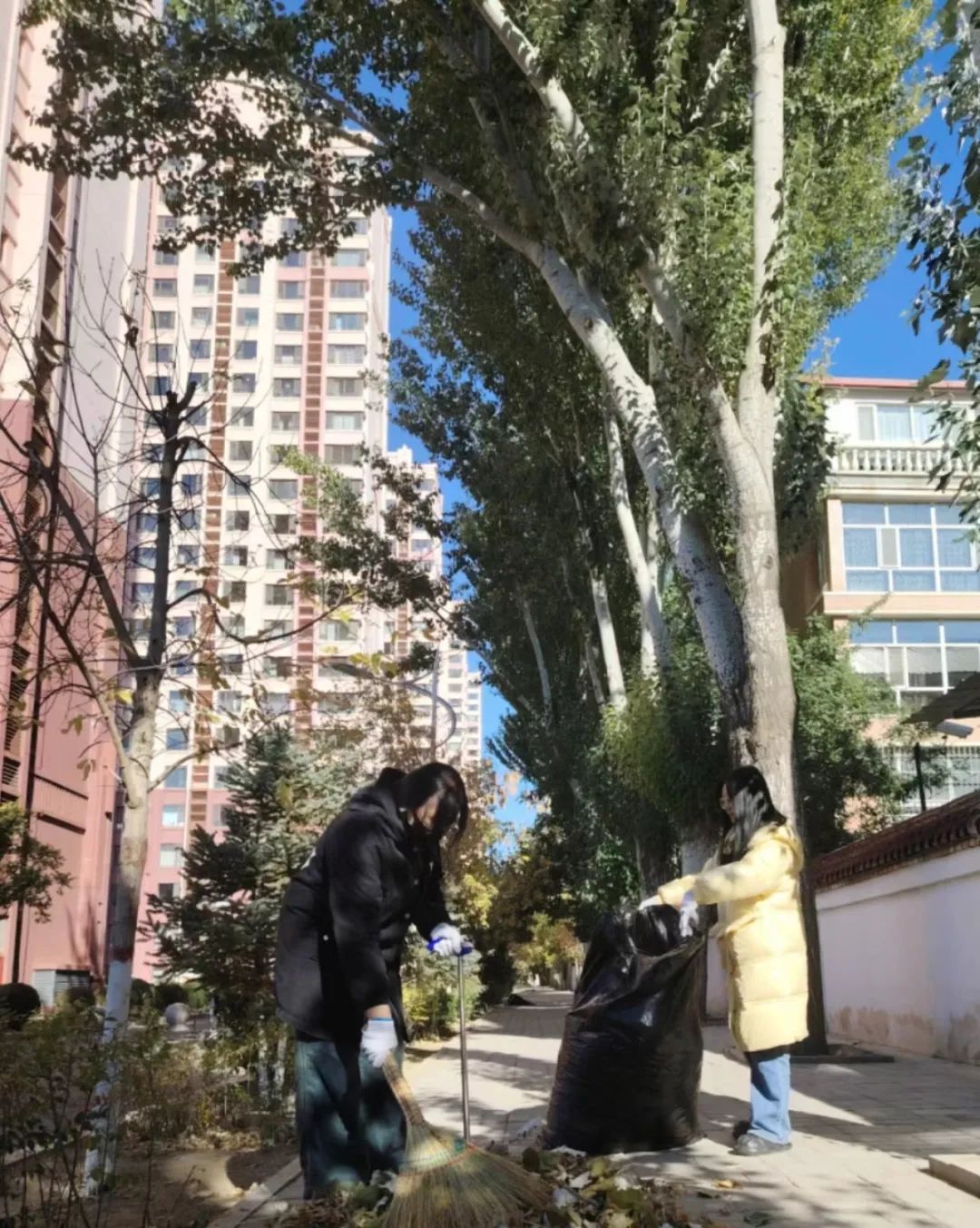 pp电子游戏官网志愿者服务队同学到达赛罕区高院社区进行环境清扫活动。