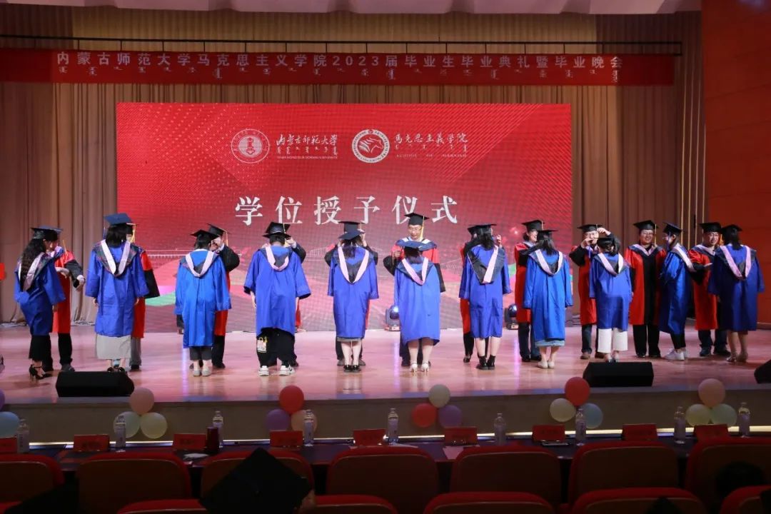 随着齐义军院长讲话的结束,开始2023届毕业生的拨穗仪式,钢布和副院长宣读《对2023届硕士毕业生、本科毕业生拟授予学位决定》,学院领导、学术评定委员会成员为2023届硕士毕业生、本科毕业生进行了拨穗仪式。