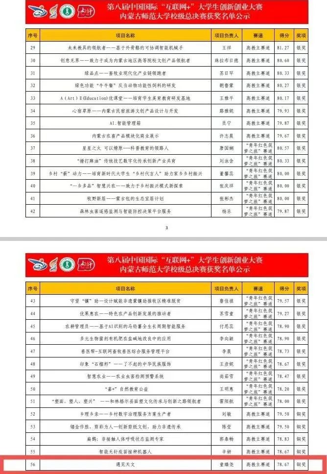 第八届“互联网+”校赛获奖情况: