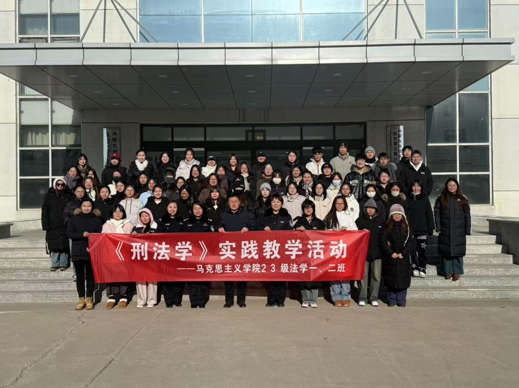 为深入开展刑法普法工作,推动法学专业学生理论知识与实践的有效结合,根据《法学专业培养方案》及《刑法学教学大纲》,12月25日上午,pp电子官网《刑法学》任课教师苏和副教授带领法学系2023级法学专业全体同学前往内蒙古自治区第一女子监狱开展以“学法进监区”为主题的普法及实践教学活动,部分民族学人类学学院的师生共同参加。