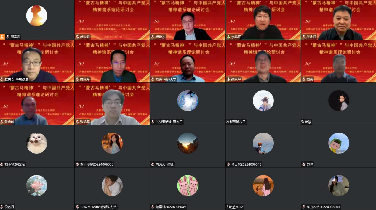 12月12日,“蒙古马精神”研究基地举办“‘蒙古马精神’与中国共产党人精神谱系”理论研讨会,本次研讨会由自治区党委宣传部理论处指导,由pp电子游戏官网和自治区哲学社会科学重点研究基地——“蒙古马精神”研究基地承办。来自区内外的十余位专家学者在线上做主题报告和交流发言。开幕式由pp电子游戏官网院长齐义军教授主持。